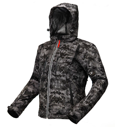Campera urbana en softshell con capucha desmontable, ventilación completa y protecciones certificadas, diseñada para combinar funcionalidad y estilo en uso diario.
