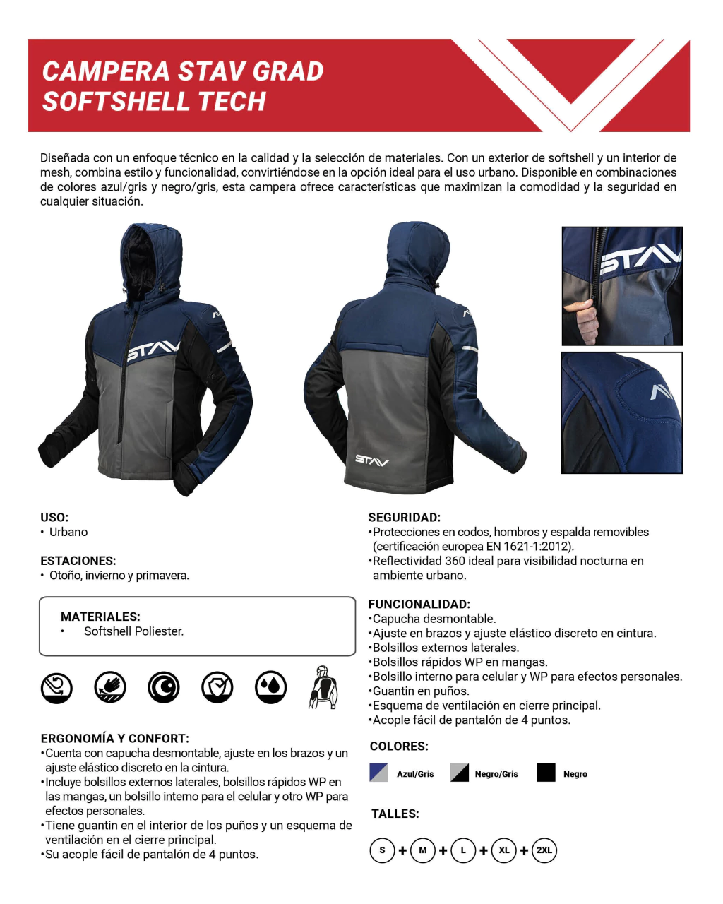 Color: Negro/Gris | Diseño de la tela: Liso | Es a prueba de agua: Sí | Estilo: Urbano | Género: Unisex | Material: Softshell | Modelo: Grad | Temporada: Otoño/Invierno | Uso Sugerido: Urbano