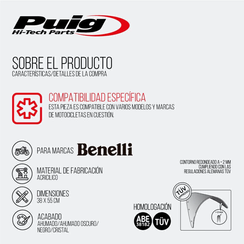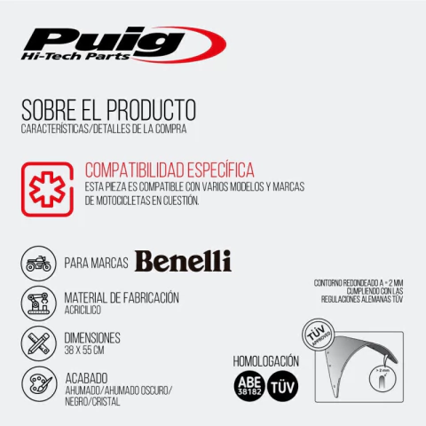 Ancho: 38 | Color: Fume | Estilo: Turismo | Largo: 55 | Material: Acrílico | Modelo: touring | Número de pieza: 9485 | Tipo de vehiculo: Moto/Cuatriciclo