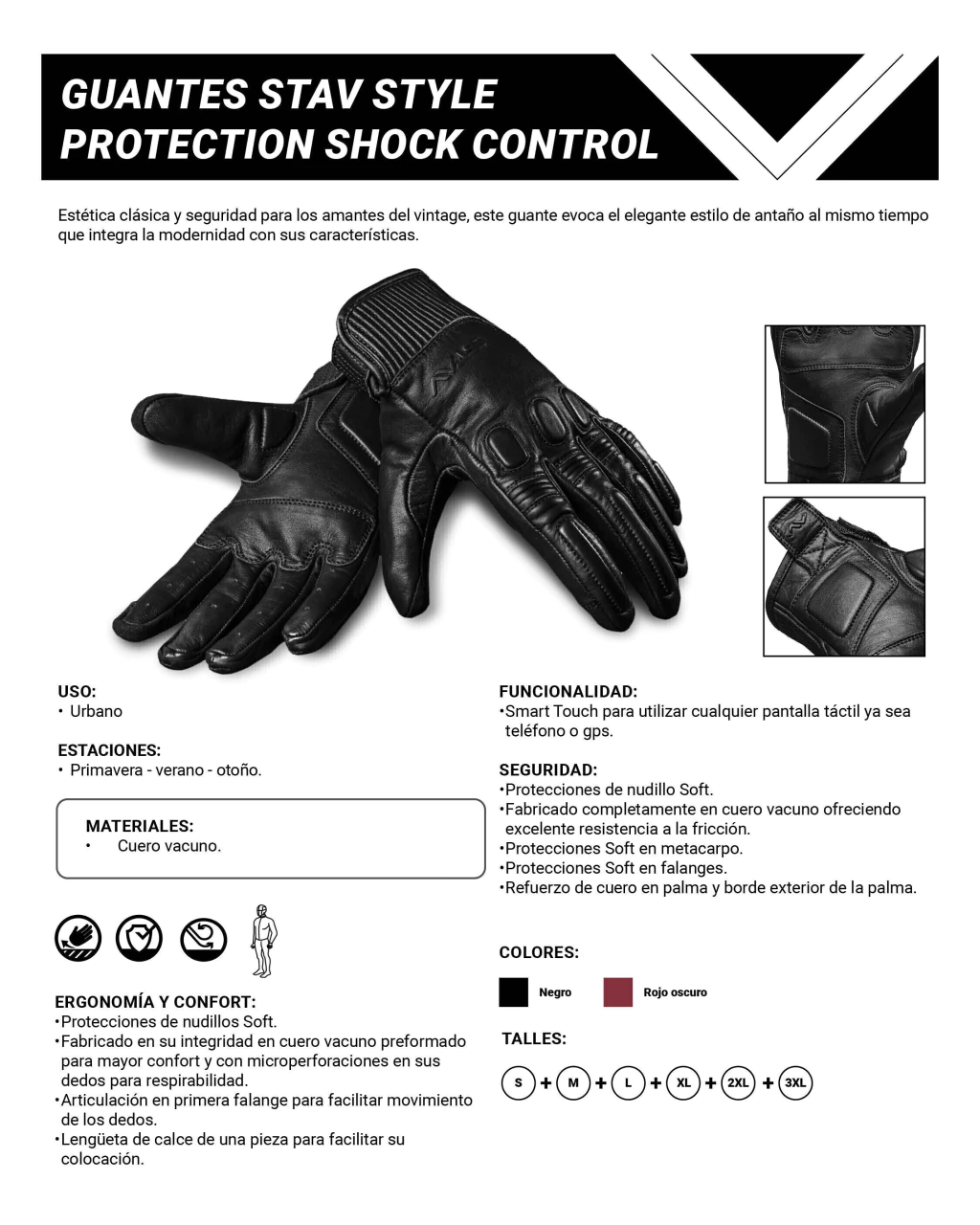 Guantes de estética clásica con protección moderna. Combinan el look vintage con características actuales para uso urbano, ofreciendo comodidad, flexibilidad y buena resistencia a la fricción.